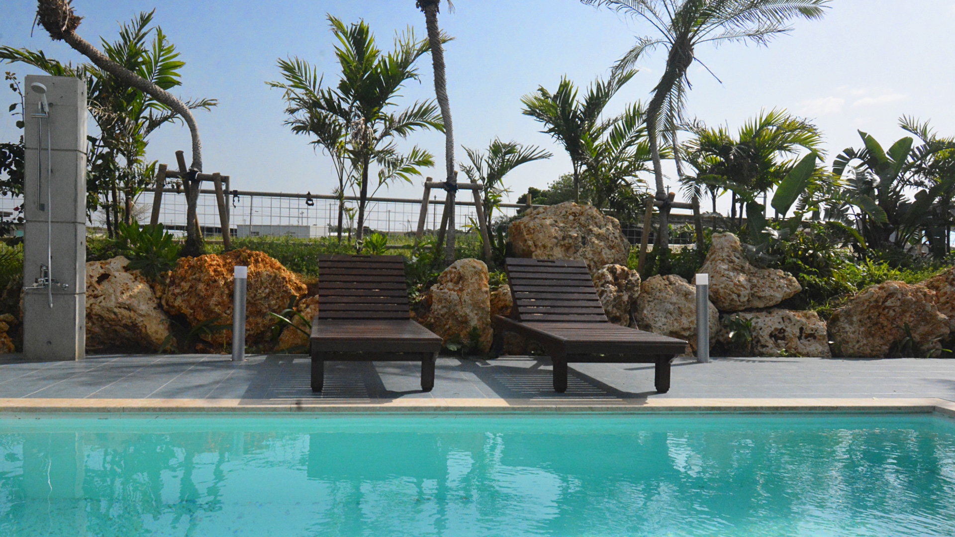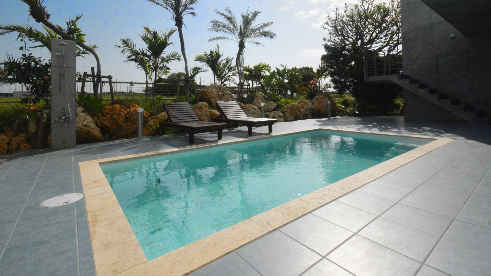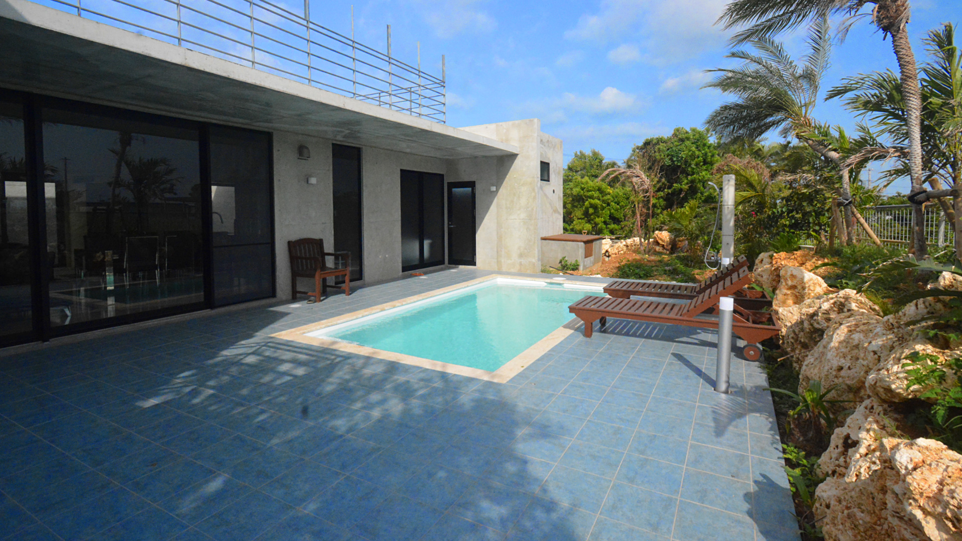 狩俣の海を望むテラス2棟に2階オーシャンビューのインフィニティプールを2基造成